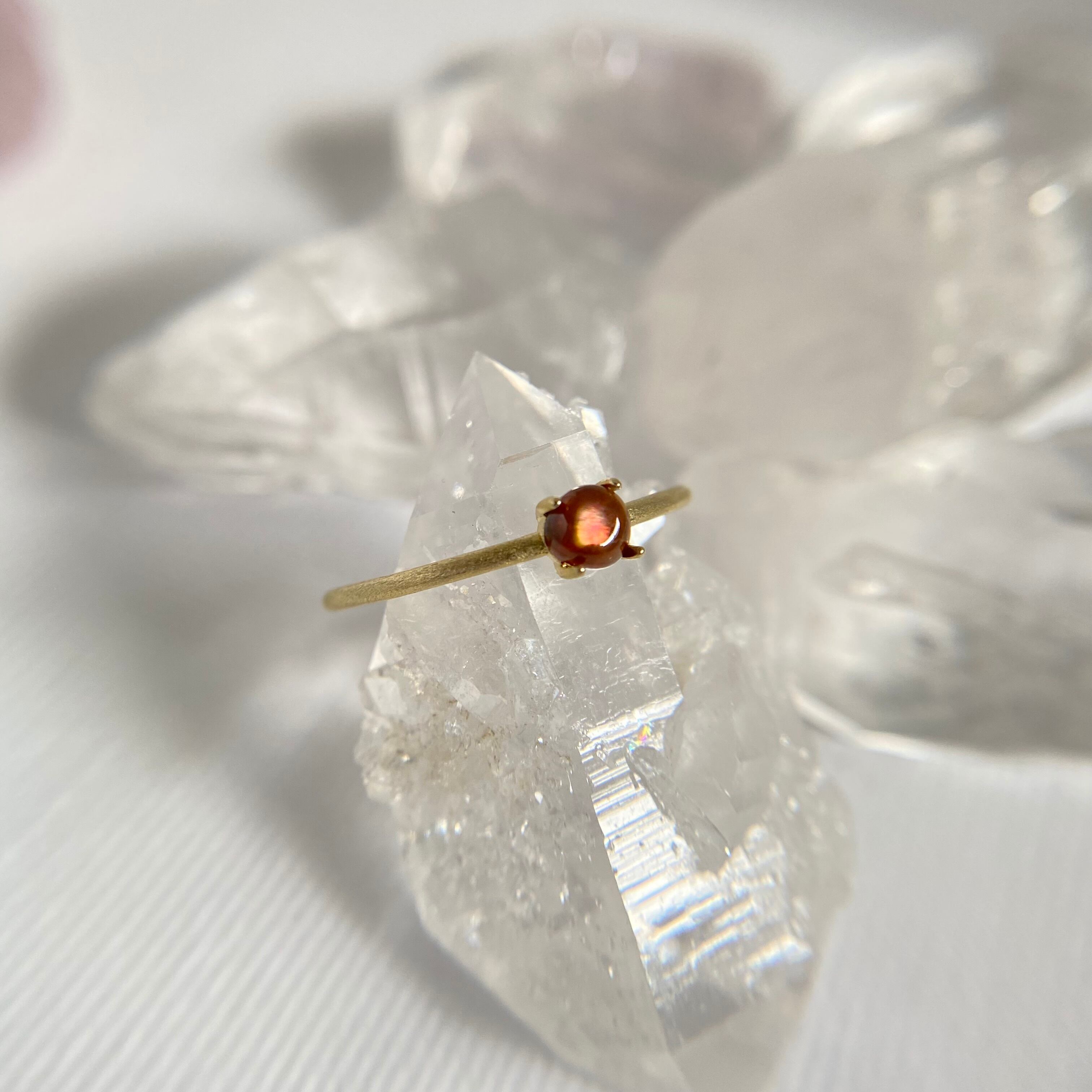 レインボーガーネットは現在は採集禁止の貴重な石で、原石そのままの可愛い形を残しながら職人が丁寧に磨いた1点もののジュエリーです。
