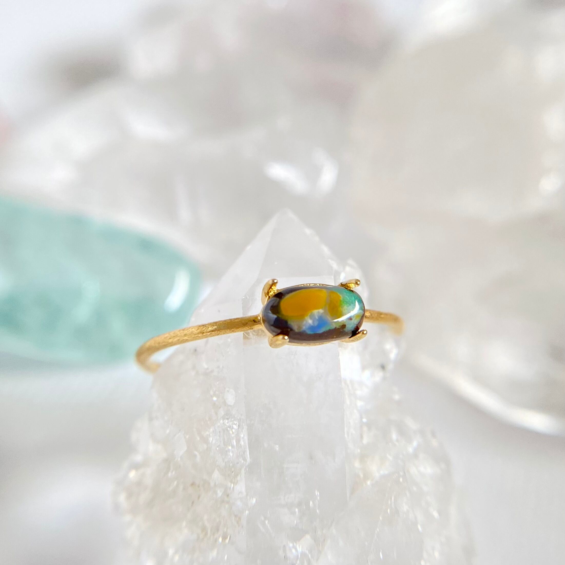 天然ボルダーオパールリング (選べるサイズ)オーストラリア産原石から磨いた1点もの!