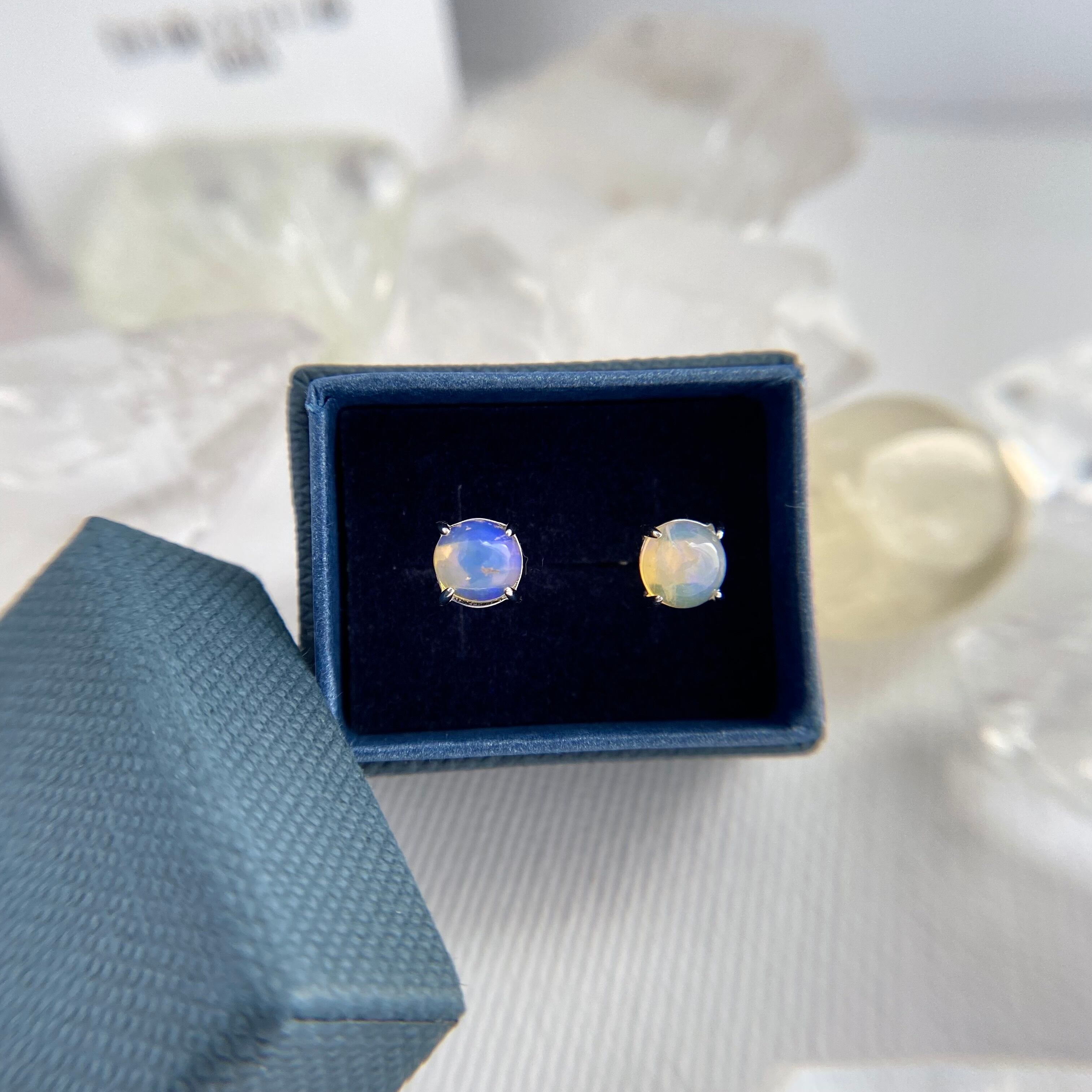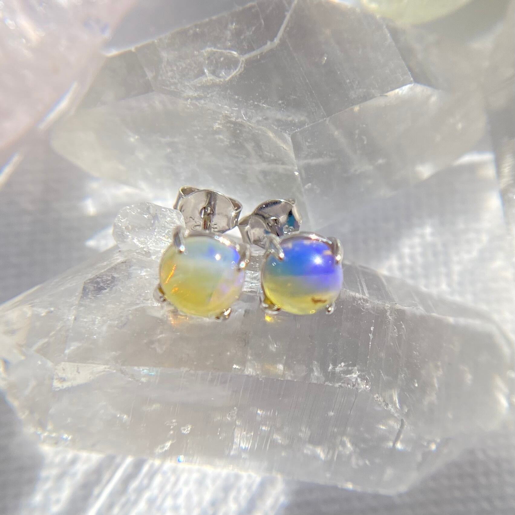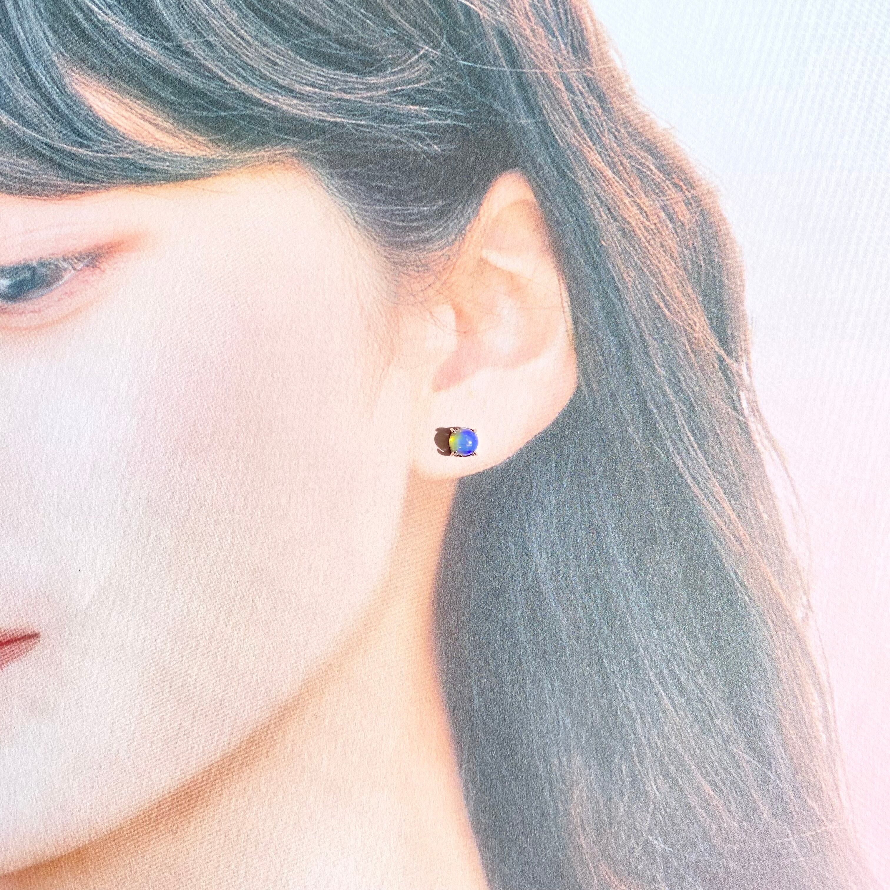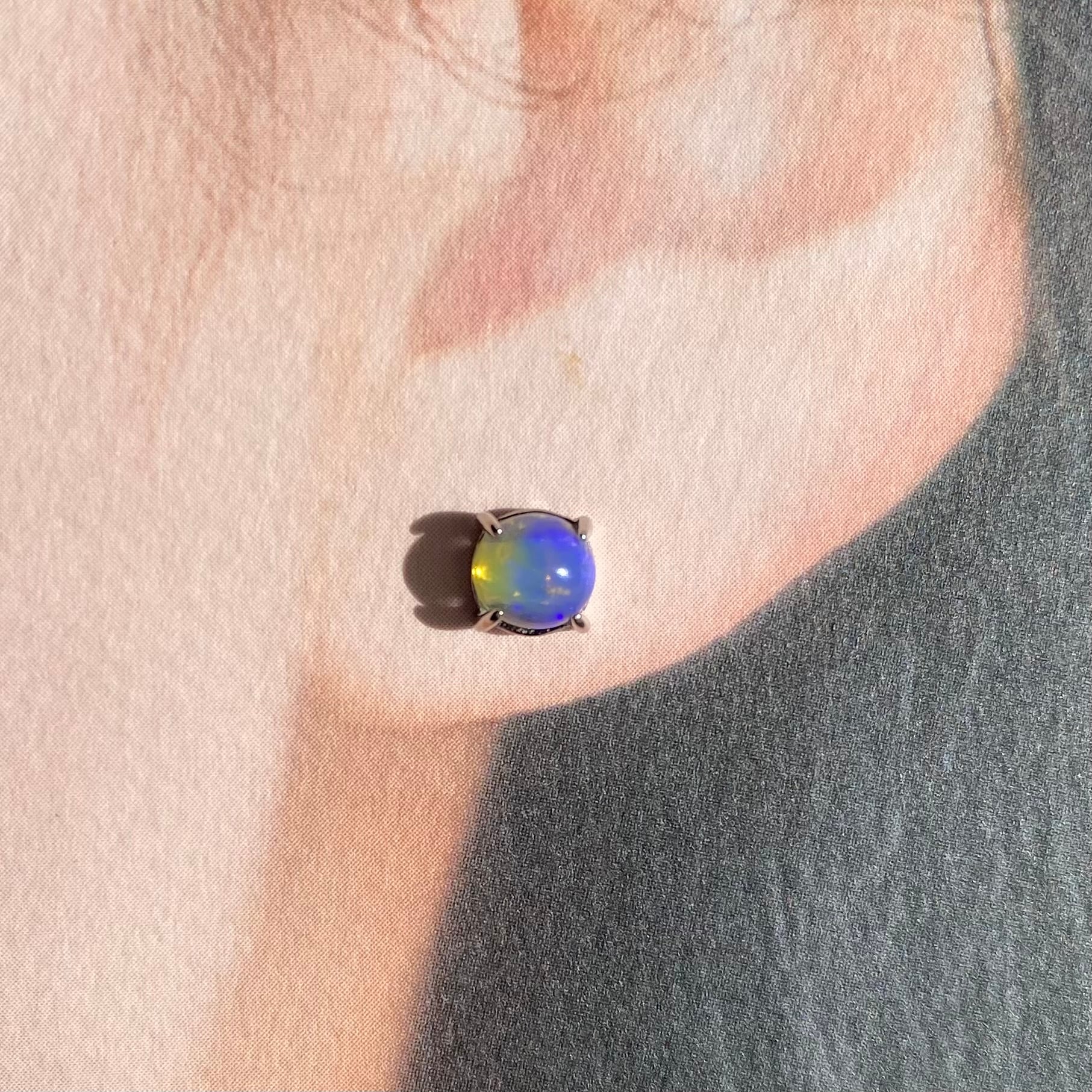 天然オパールシルバーピアス☆オーストラリア産原石から磨いた1点もの