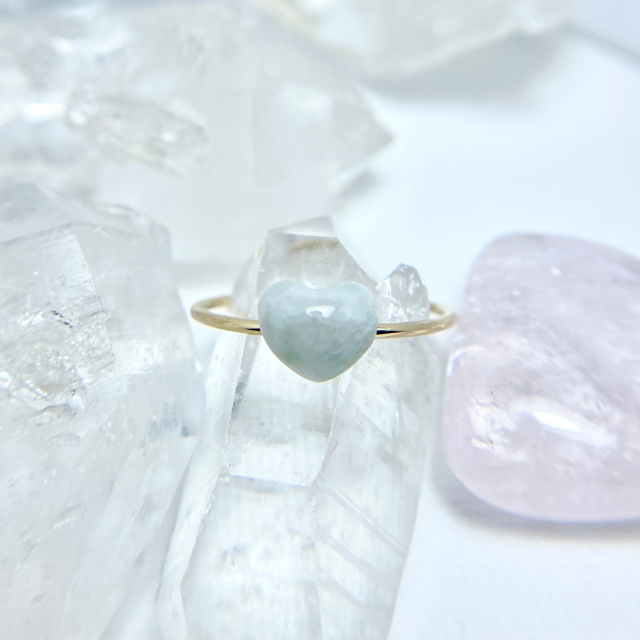 天然翡翠のハートリング!新潟県糸魚川産原石を丁寧に磨き上げた、希少な一点物です。